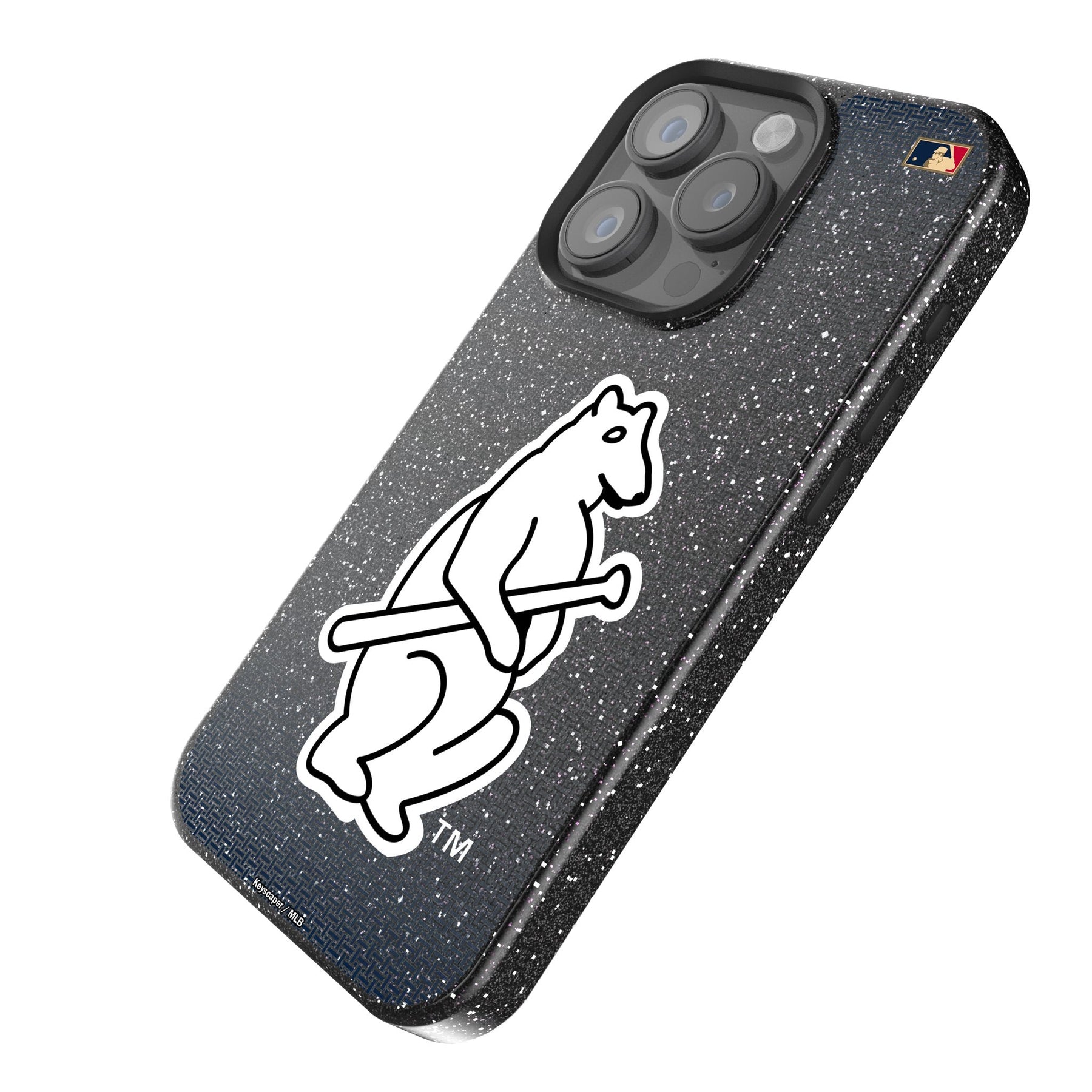 This black, sparkly case with a microfiber interior is officially-licensed and MagSafe compatible. It provides fun and protection to your cell phone. Designed and decorated by Keyscaper in Tualatin, Oregon, USA., this case is exciting and durable. It has precise speaker and port cutouts, easy press buttons, and a raised lip around the screen and camera lens to provide extra protection against accidental bumps and scratches.